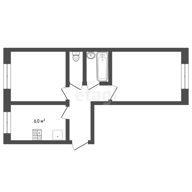 Рациональная планировка с двумя изолированными комнатами и окнами на разные стороны, что обеспечивает хорошую инсоляцию и проветривание.